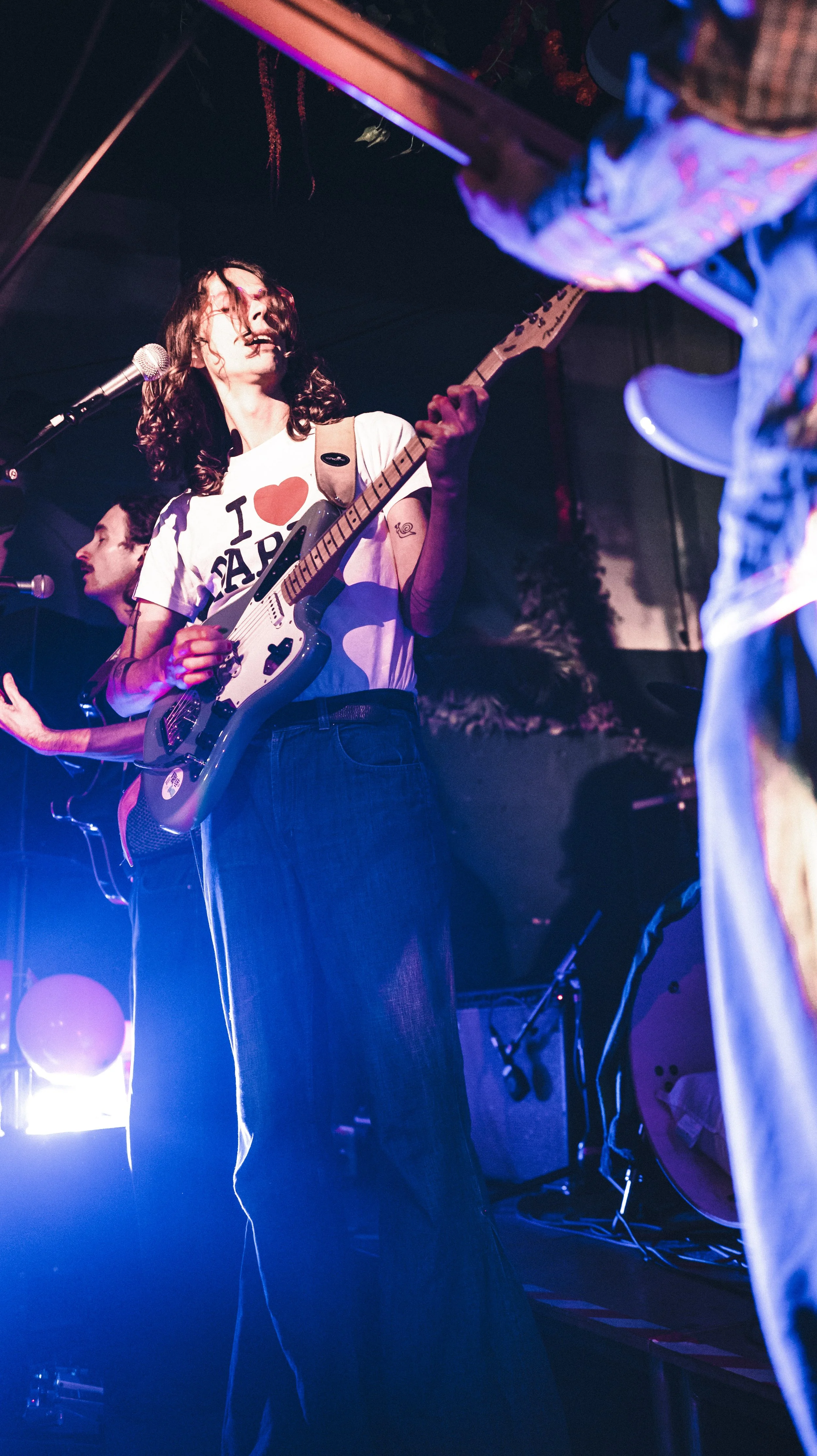 With their ethereal nature, and tendency to wallow in a delightful whimsey, it was no surprise to hear the band feel “AI is killing creativity” but provide the perfect antithesis in their own live music, which they assure is “The best form of Hutch”. When it comes to vocalising politics, the band simply couldn’t play without chanting those two powerful words ‘Free Palestine’, which they assured was simply the right thing to do- with a platform comes social responsibility, as the band state “Our words have power”.